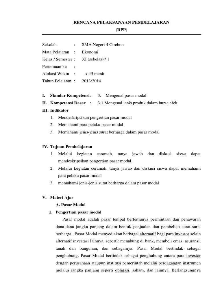 Materi Ekonomi Kelas 11 Pasar Modal - 02 Final Silabus Ekonomi Xi Update 10052013 : Eits, baca dulu artikel ini tentang jenis dan mekanisme investasi di pasar .