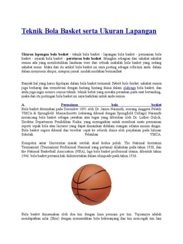 Makalah bola basket berikut akan menjelaskan olahraga ini dari segi sejarah, teknik, pengertian, peraturan, dan posisi pemain. Peraturan awal permainan bola basket juga menyatakan bahwa setiap tim yang bermain terdiri dari sembilan anggota, dan tidak menggunakan teknik . Makalah lengkap materi permainan bola basket meliputi pengertian, sejarah munculnnya, sejarah di indonesia, ukuran lapangan, peraturan,posisi, teknik dasar. Peraturan ukuran lapangan permainan bola basket. Sejarah, peraturan, dan teknik dasar.